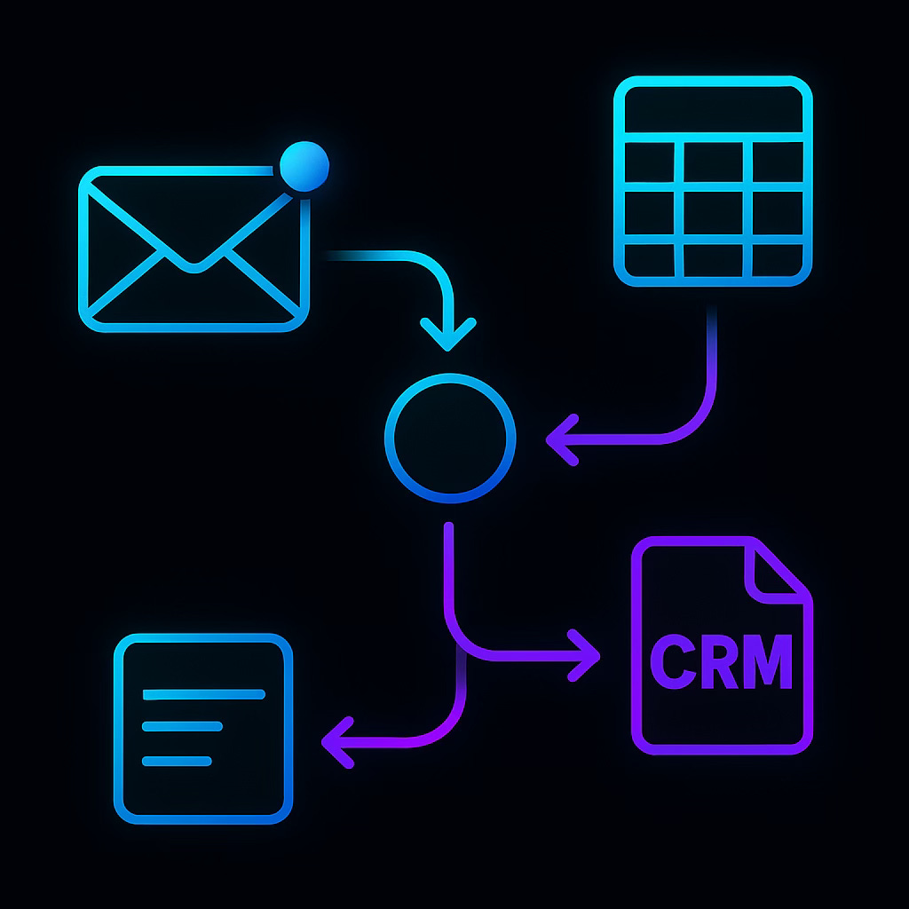 Exemple de microflux : Une agence marketing recevait des demandes de devis par email, les copiait manuellement dans un tableur, puis dans son CRM.