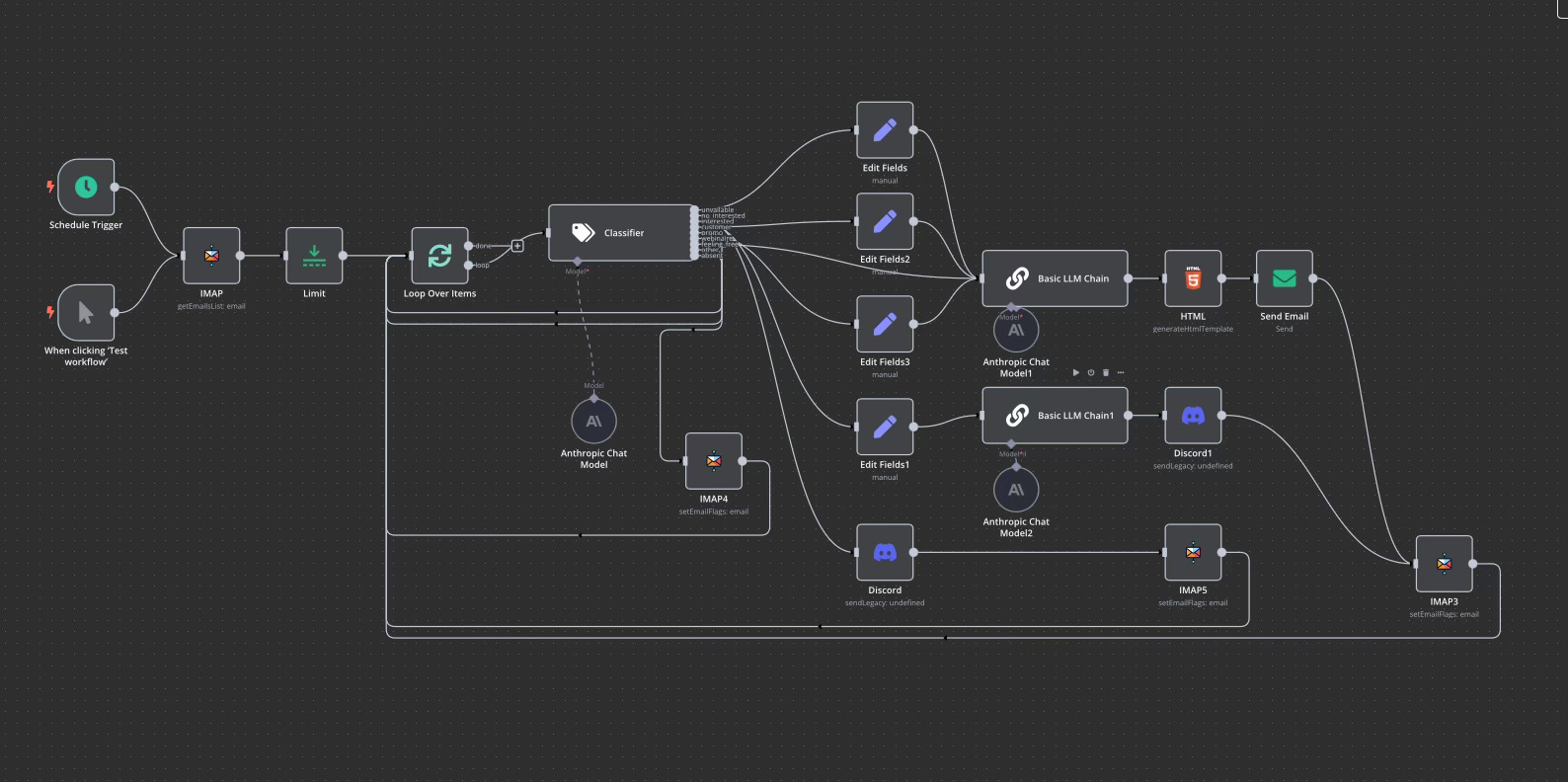 Utilisez un outil comme n8n pour vous connecter à votre boîte de réception IMAP et récupérer automatiquement les emails non lus concernant votre événement.